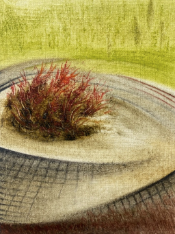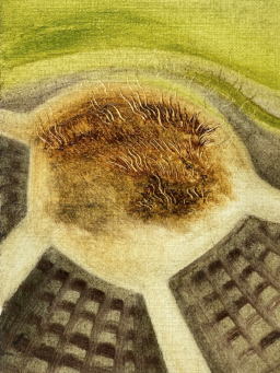 My practice is rooted in a deep fascination with the natural world; it’s phenomena, mysteries, oddities and the fragile balance of its vulnerability and power. In drawings and paintings primarily in oil, I create imagined environments that contemplate Earth’s next iteration, toying with ideas of utopia and dystopia, what might survive the next millennia, and how familiar or alien that will look. Through a sci-fi lens, I reflect on the climate crisis and the impending shift in Earth’s trajectory, whilst imagining both destruction and the cycle of potential rebirth.